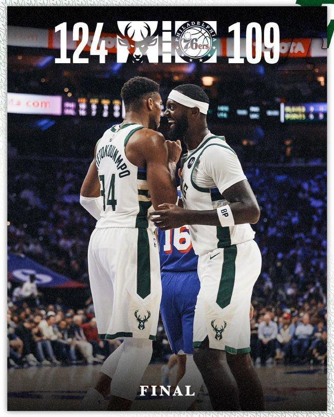 76东说念主两位球星恩比德和乔治均缺阵,雄鹿从第二节运转就莫得再给76东说念主契机,最终用一场大捷获取开门红。