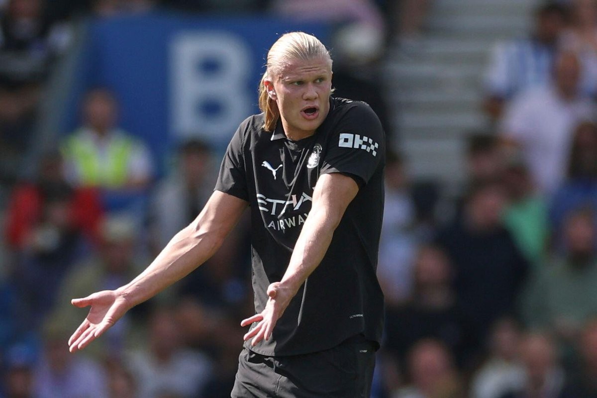 此役客场对阵布莱顿,哈兰德首发出战,迎来英超生计第100次出场。