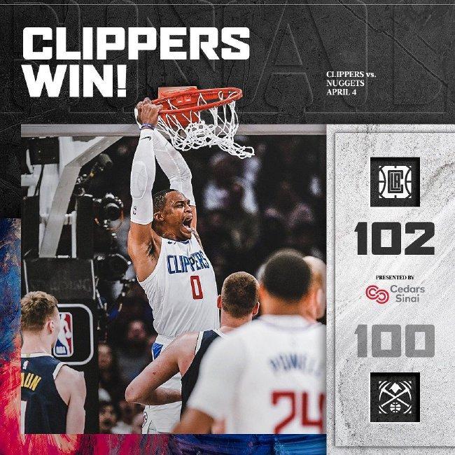 莱昂纳德缺阵,乔治28分4篮板2助攻3抢断率队取胜,哈登23投6中、三分13中2得到20分6篮板8助攻,祖巴茨14分15篮板,威少12分6篮板5助攻,鲍威尔11分3篮板3助攻,塔克首发出战一分未得但谨防端孝敬雄壮。